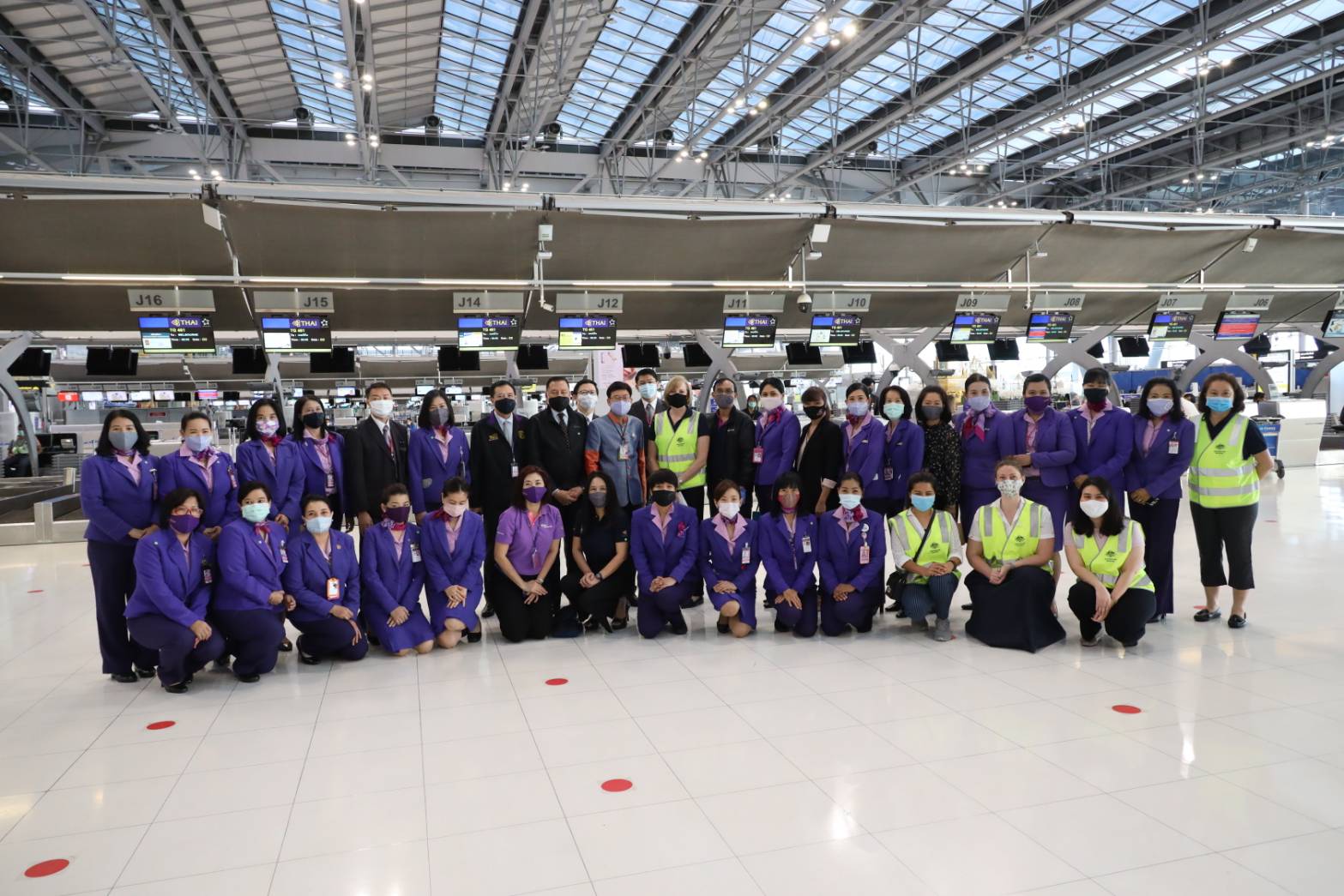 การบินไทยให้ความสำคัญด้านความปลอดภัยในสุขภาพของผู้โดยสารและพนักงานที่ปฏิบัติงานบนเที่ยวบิน เพื่อลดความเสี่ยงจากการติดเชื้อไวรัสโควิด-19 บริษัทฯ ได้ให้บริการผู้โดยสารด้วยการทำ Physical Distancing เริ่มตั้งแต่ขั้นตอนการตรวจรับบัตรโดยสาร การบริการอาหารบนเครื่องบินในรูปแบบอาหารกล่อง (Disposal Box) เพื่อลดการสัมผัสระหว่างบุคคล ไปจนถึงขั้นตอนการนำผู้โดยสารลงจากเครื่องบินแบบเว้นระยะห่าง เพื่อหลีกเลี่ยงความแออัด