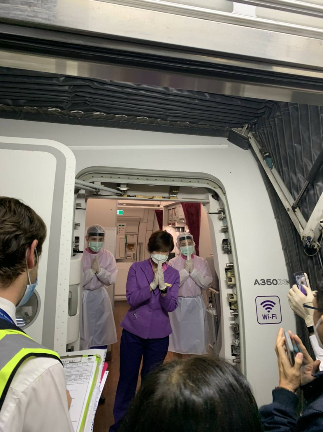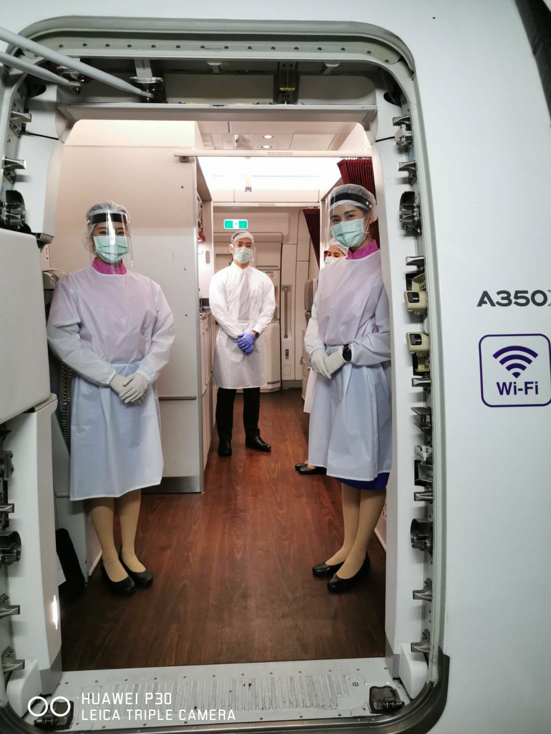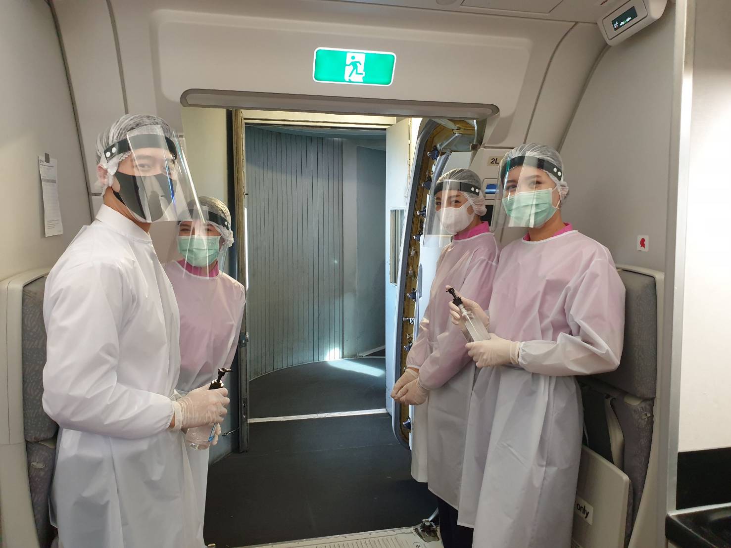 พร้อมทั้งจัดให้มีการตรวจวัดอุณหภูมิผู้โดยสารหลังการให้บริการอาหารบนเที่ยวบินทั้งสองมื้อ รวมทั้งให้บริการเจลแอลกอฮอล์ล้างมือตลอดเที่ยวบิน พร้อมกันนี้ บริษัทฯ ได้เน้นย้ำให้พนักงานต้อนรับบนเครื่องบินปฏิบัติตามมาตรการความปลอดภัยอย่างเคร่งครัดขณะปฏิบัติหน้าที่ อาทิ สวมชุดป้องกัน สวมหน้ากากอนามัย และถุงมือ รวมทั้งคอยสังเกตอาการผู้โดยสารในระหว่างเที่ยวบิน