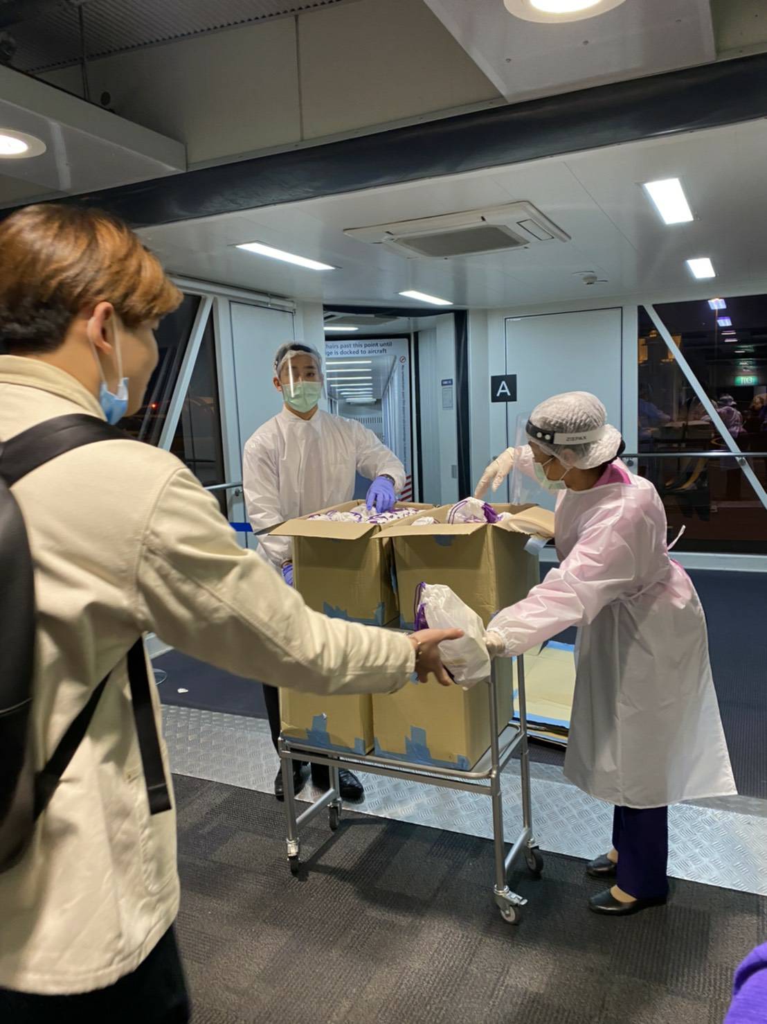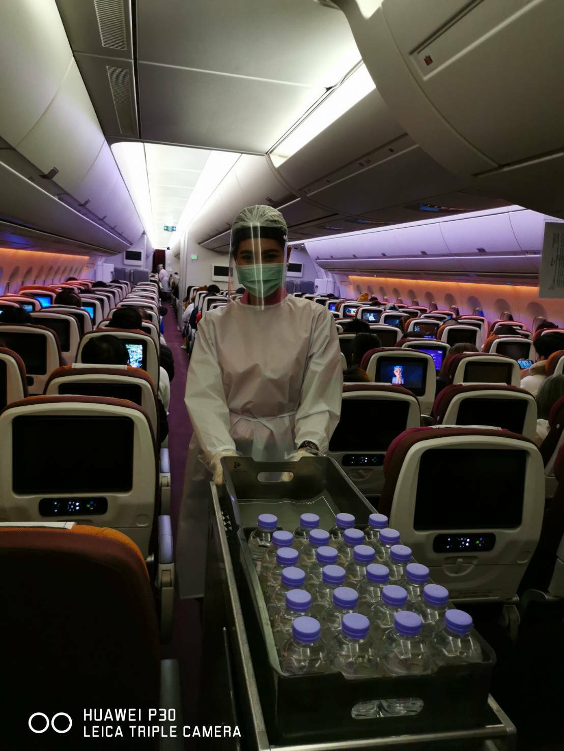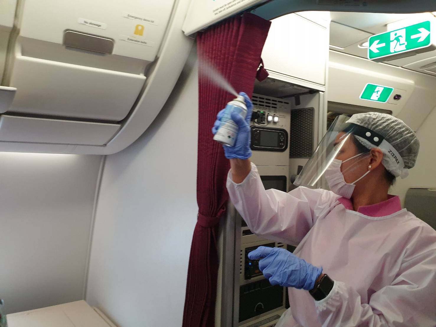 พร้อมทั้งจัดให้มีการตรวจวัดอุณหภูมิผู้โดยสารหลังการให้บริการอาหารบนเที่ยวบินทั้งสองมื้อ รวมทั้งให้บริการเจลแอลกอฮอล์ล้างมือตลอดเที่ยวบิน พร้อมกันนี้ บริษัทฯ ได้เน้นย้ำให้พนักงานต้อนรับบนเครื่องบินปฏิบัติตามมาตรการความปลอดภัยอย่างเคร่งครัดขณะปฏิบัติหน้าที่ อาทิ สวมชุดป้องกัน สวมหน้ากากอนามัย และถุงมือ รวมทั้งคอยสังเกตอาการผู้โดยสารในระหว่างเที่ยวบิน
