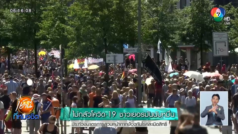 ไม่กลัวโควิด-19 ชาวเยอรมันนับหมื่น ประท้วงมาตรการสวมหน้ากากป้องกันโรคละเมิดสิทธิ - ช่อง 7