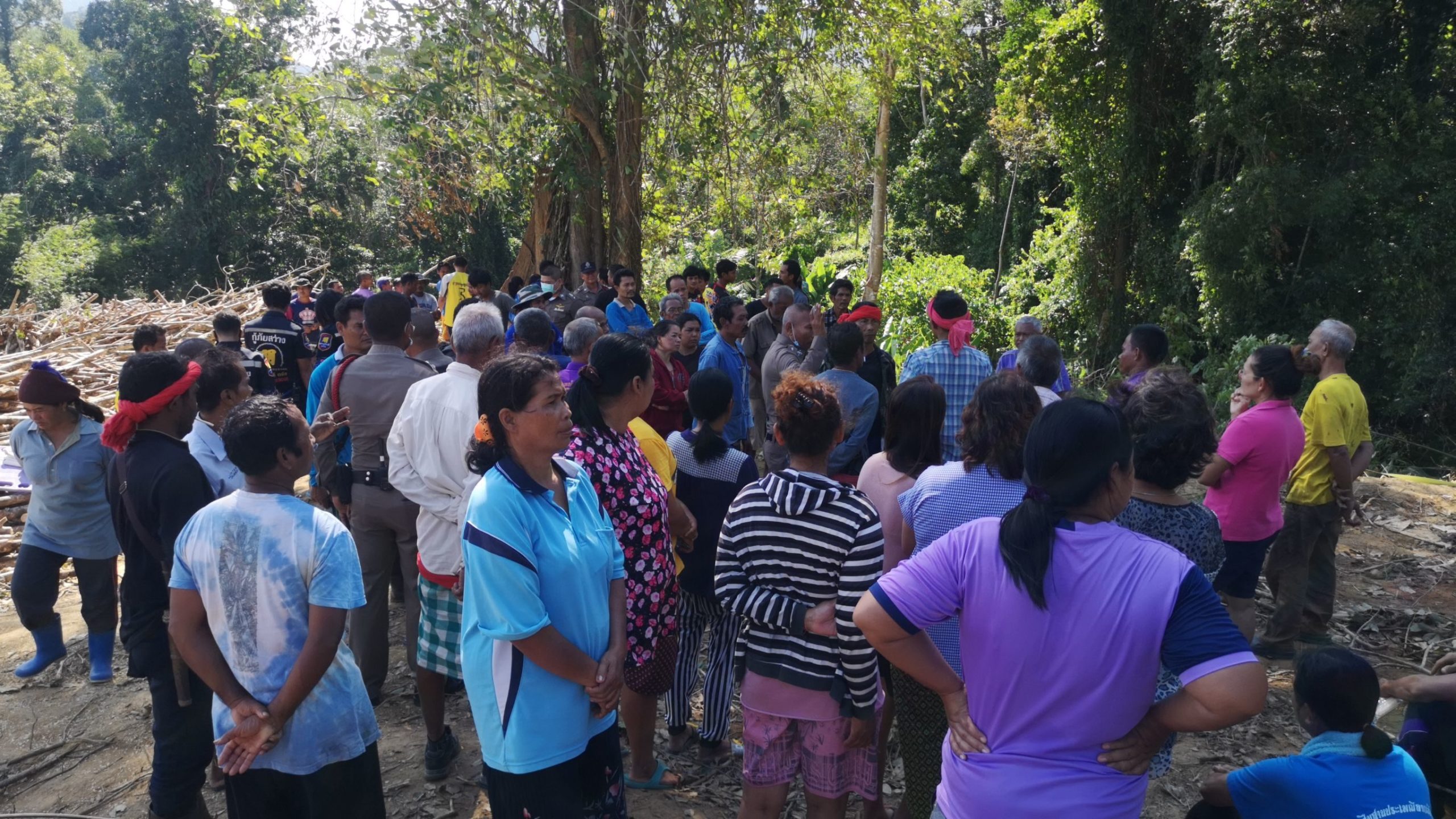 ทั้งนี้ เจ้าหน้าที่ต้องใช้ววิธีการเดินเท้าเข้าไปในที่เกิดเหตุ เมื่อไปถึงพบว่าจุดเกิดเหตุเป็นสวนยางพาราที่มีการโค่นล้มยางใหม่ ทั้งนี้ พบศพนายพัน นวลพรหม อายุ 63 ปี เป็นชาว อ.กงหรา จ.พัทลุง ในสภาพศพนอนเสียชีวิตอยู่ริมเนินที่มีก้อนหินขนาดใหญ่