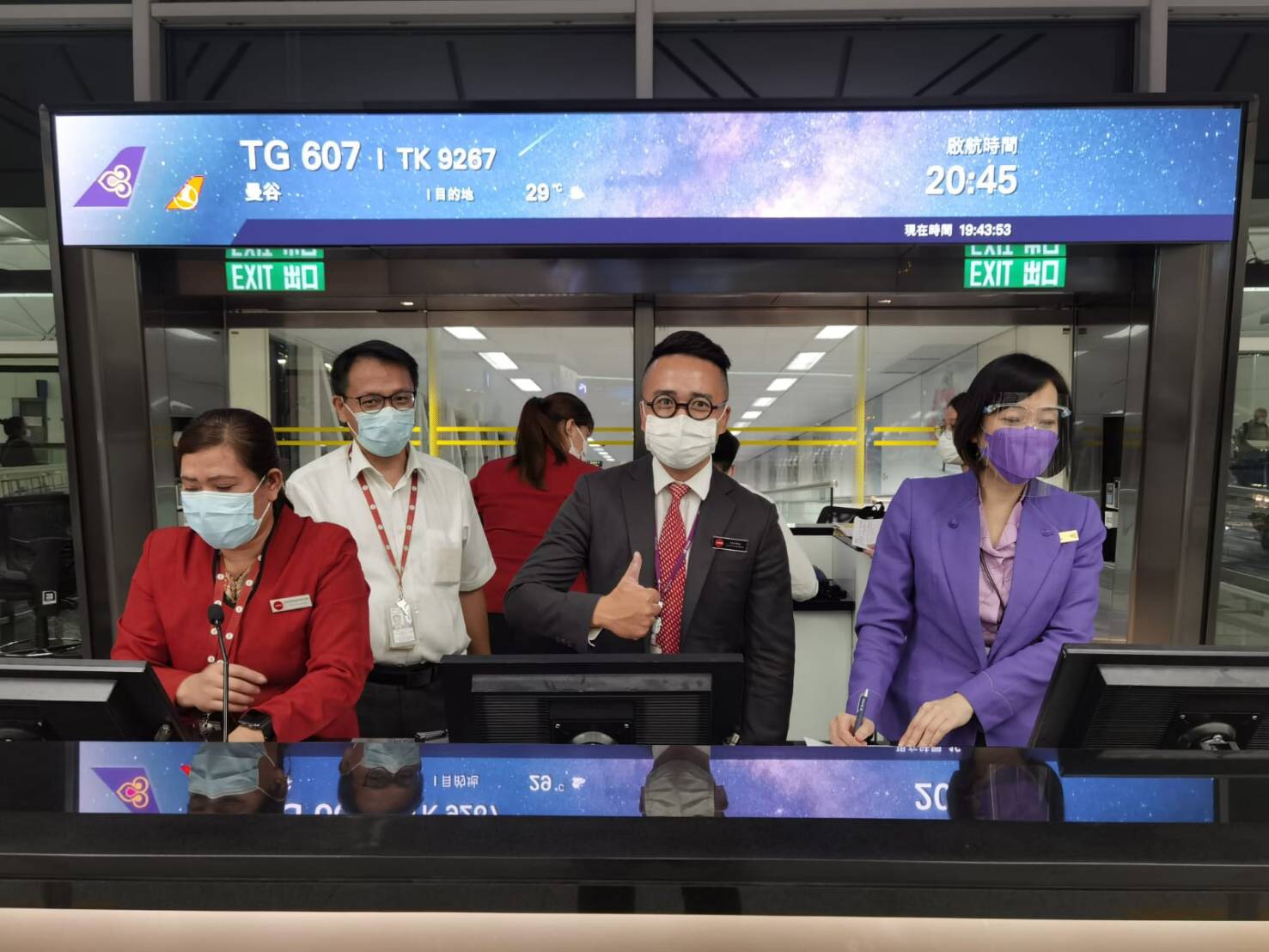 โดยให้ความร่วมมือกับกระทรวงการต่างประเทศของไทย สถานกงสุลใหญ่ ณ เมืองฮ่องกง จัดเที่ยวบินพิเศษในวันที่ 29 สิงหาคม 2563 รับผู้โดยสารชาวไทยจำนวน 216 คน เดินทางมาในเเที่ยวบินที่ ทีจี 607 เส้นทาง ฮ่องกง-กรุงเทพฯ ออกเดินทางจากฮ่องกง เวลา 20.48 น. (เวลาท้องถิ่น) ถึงกรุงเทพฯ เวลา 22.24 น. ทั้งนี้ บริษัทฯ ยังได้ทำการขนส่งสินค้าในเที่ยวบินทั้งขาไปและขากลับด้วย