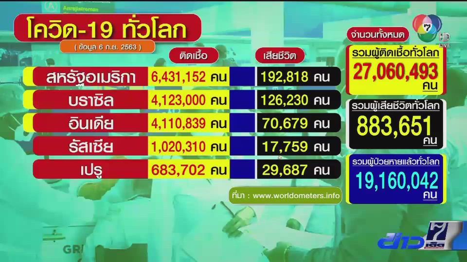 ยอดผู้ติดเชื้อโควิด-19 ทั่วโลกทะลุ 27 ล้านคน - ช่อง 7