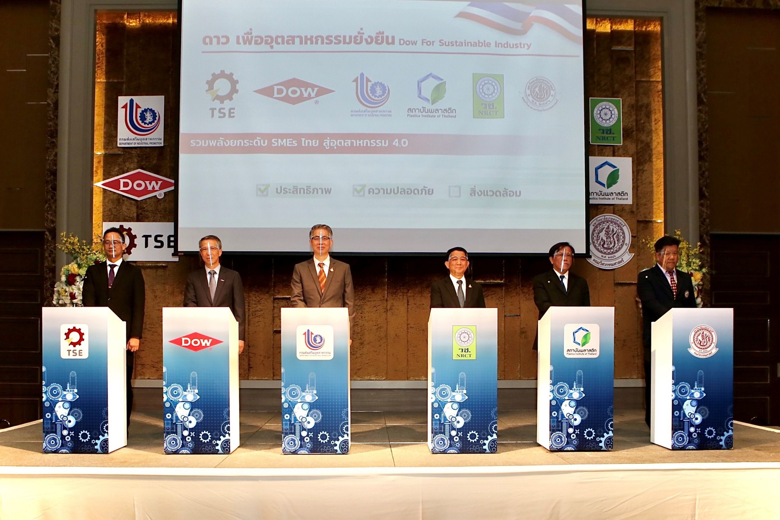 กลุ่มบริษัทดาว ประเทศไทย ร่วมกับ กรมส่งเสริมอุตสาหกรรม กระทรวงอุตสาหกรรม สถาบันพลาสติก และ คณะวิศวกรรมศาสตร์ มหาวิทยาลัยธรรมศาสตร์ ประกาศความร่วมมือสนับสนุน SMEs ไทย สู่อุตสาหกรรม 4.0 อย่างต่อเนื่อง โดยในปีนี้ มีสองหน่วยงานใหม่ ได้แก่ สำนักงานการวิจัยแห่งชาติ (วช.) และ คณะวิศวกรรมศาสตร์ มหาวิทยาลัยเกษตรศาสตร์ เข้าร่วมในโครงการ