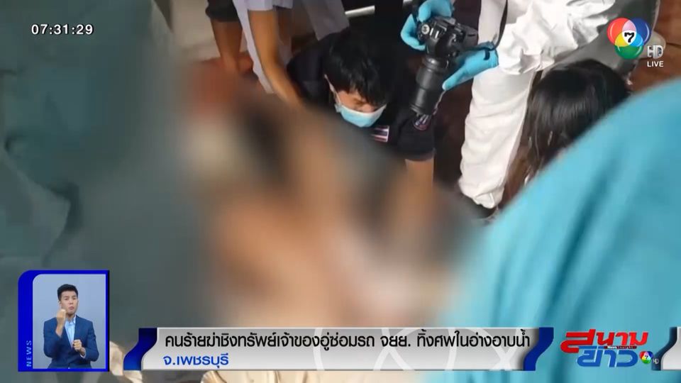 คนร้ายฆ่าชิงทรัพย์เจ้าของอู่ซ่อมรถ จยย.ทิ้งศพในอ่างอาบน้ำ จ.เพชรบุรี - ช่อง 7